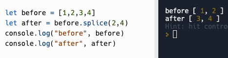 before에 요소들이 삭제되고, after에 삭제된 항목이 저장된다. (원래 배열 변함)